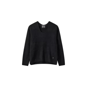 Mos Moshin klassikkoneule mustana. Väljä malli ja v-pääntie. Pehmeä ja kevyt alpakkasekoite.