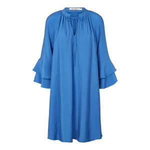 Rue de Femmen ihanan kevyt viskoosimekko. Kaunis A-linjainen malli, levenevät hihat. Mekkoon on kiinniommeltu ohut vuorikangas.