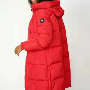 Mos Moshin jokavuotinen pitkä untuvatakki upeassa punaisen sävyssä. Takissa on reilun kokoinen huppu, taskut jotka saa napeilla suljettu. Edessä vetoketju joka avautuu molempiin suuntiin. Sivuissa halkiot jotka helpottavat kävelyä. Lämmin mutta kevyt untuvatakki pitämään kylmän poissa.
