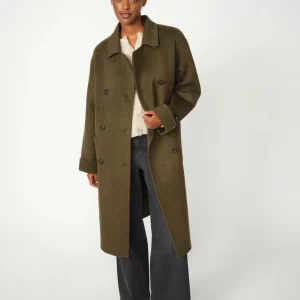 Klassinen villakangastakki vihertävänä. Kaksirivinapitus sekä taskut etuosassa. Hihansuissa käänteet. Täydellinen kaupunkitakki syksyyn.