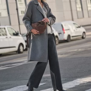 Klassinen villakangastakki harmaana. Kaksirivinapitus sekä taskut etuosassa. Hihansuissa käänteet. Täydellinen kaupunkitakki syksyyn.