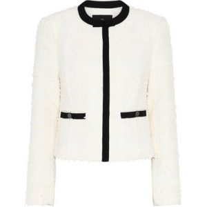 Upea naisellinen jakku jossa struktuuripinta. Normaali istuvuus. Edessä taskut jotka ovat napilla suljettavissa. Edessä musta rusetti.