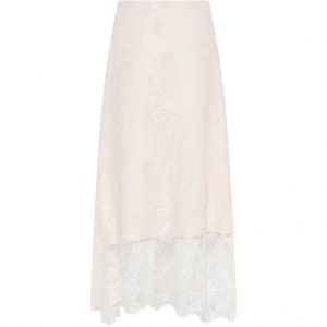 Herkkä pitsihame midimittaisella pituudella. Sivussa vetoketju ja kumilankavyötärö.