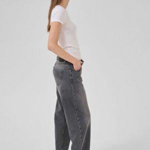 28 tuumaisella pituudella oleva korkeavyötäröinen-farkku. Ns. barrel farkku eli väljä reidestä ja nilkkaan kapeneva malli.