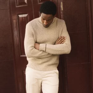 Ylellinen villasilkki-sekoiteneule poolokauluksella. Sporttinen neule syksyyn ja talveen. Villapaidan takaosassa mos moshin logo. Normaalikokoa.