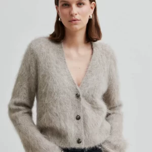 Pehmeä ja pörröinen neuletakki on valmistettu alpakkasekoitteesta. V-pääntie ja nappikiinnitys koko pituudelta sekä pitkät hihat. Suora, hieman laatikkomainen istuvuus. Normaali mitoitus.