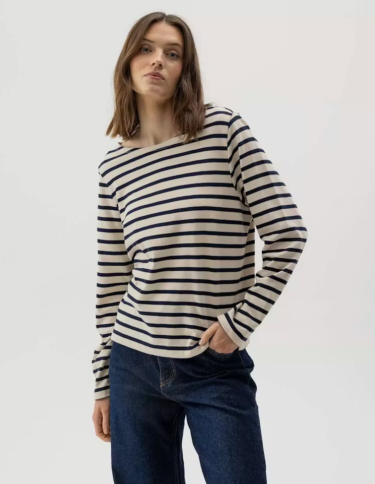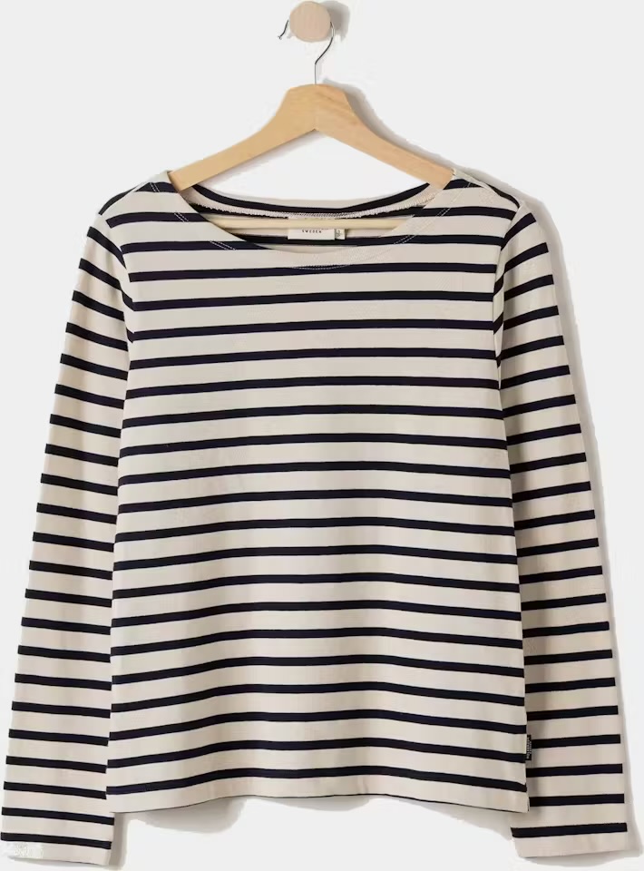 Kesän klassikkopaita venekauluksella. Normaali istuvuus. Täysmittainen hiha.
