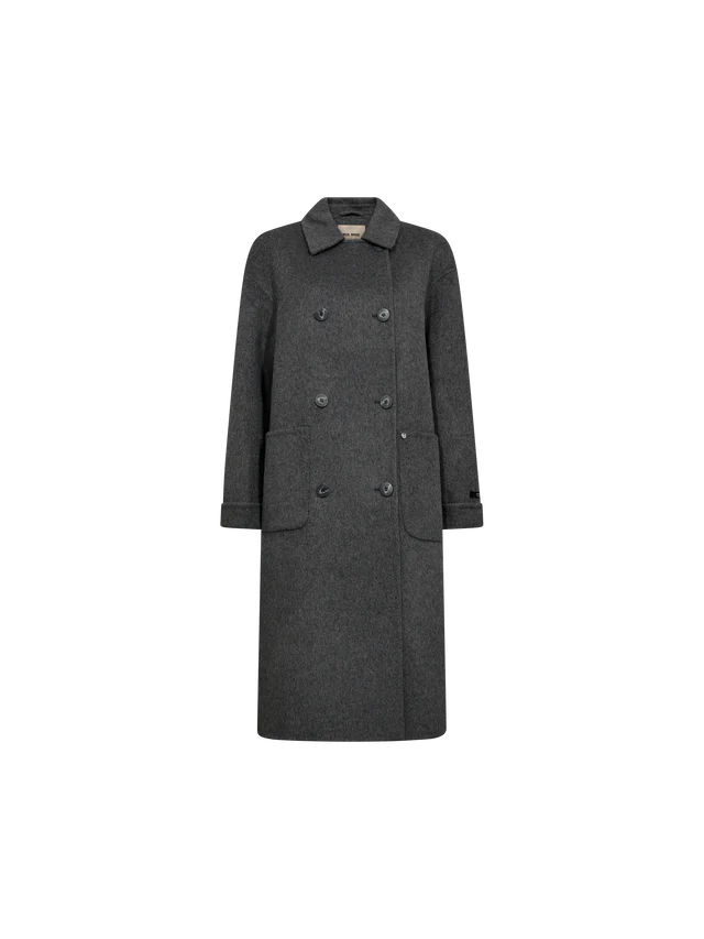 Klassinen villakangastakki harmaana. Kaksirivinapitus sekä taskut etuosassa. Hihansuissa käänteet. Täydellinen kaupunkitakki syksyyn.
