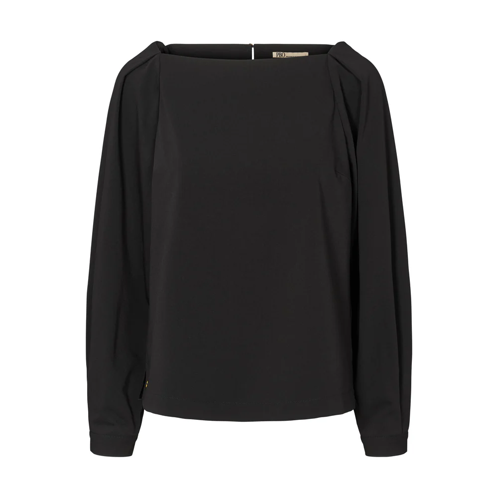 Kaunis venepääntiellä oleva ryhdikäs paita. Olkapäiden kohdalla laskokset, hieman pussimainen hiha. Hihansuissa napit. Väri: syvän musta